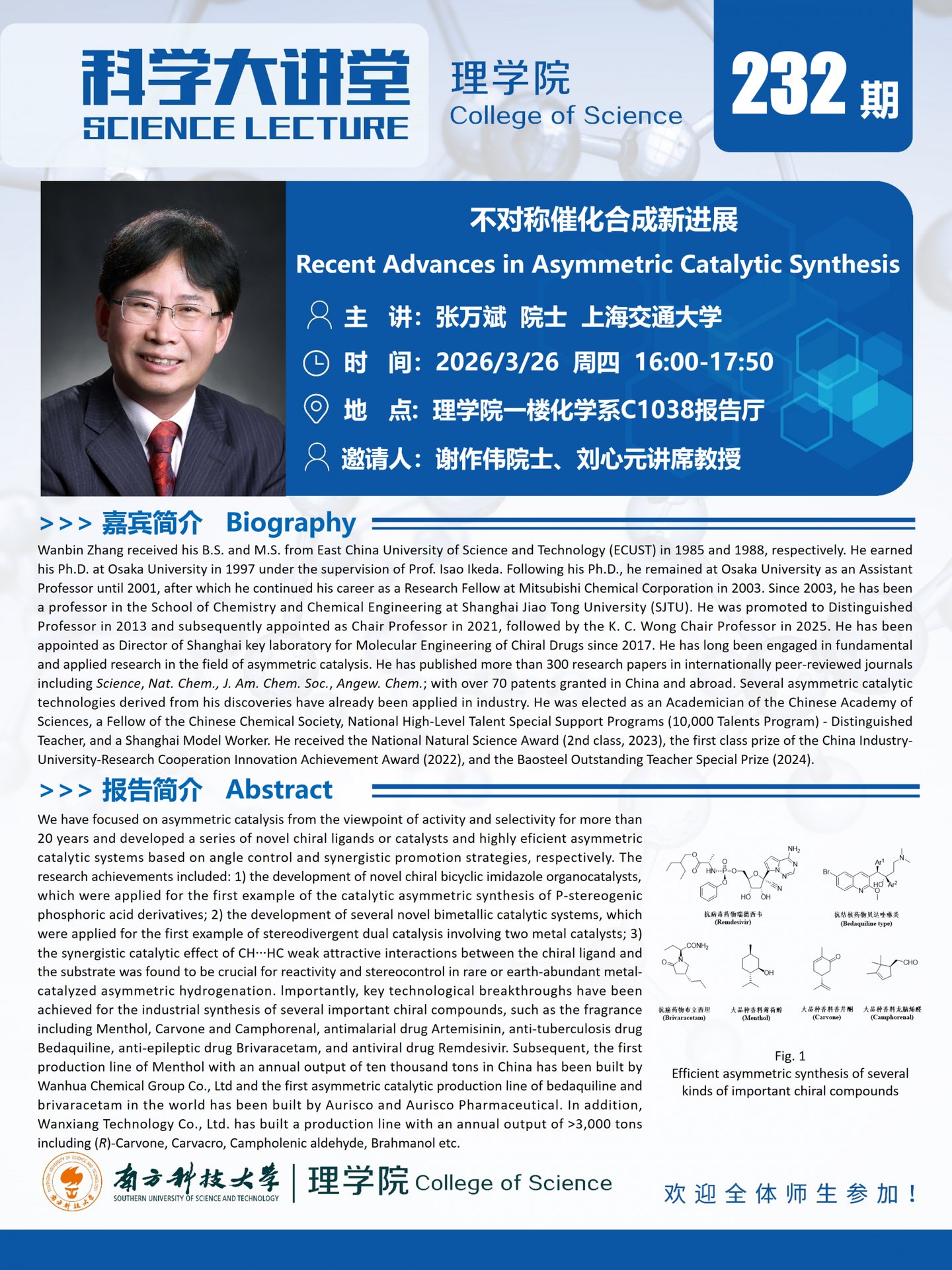 《科学大讲堂 第232期》张万斌 院士:不对称催化合成新进展