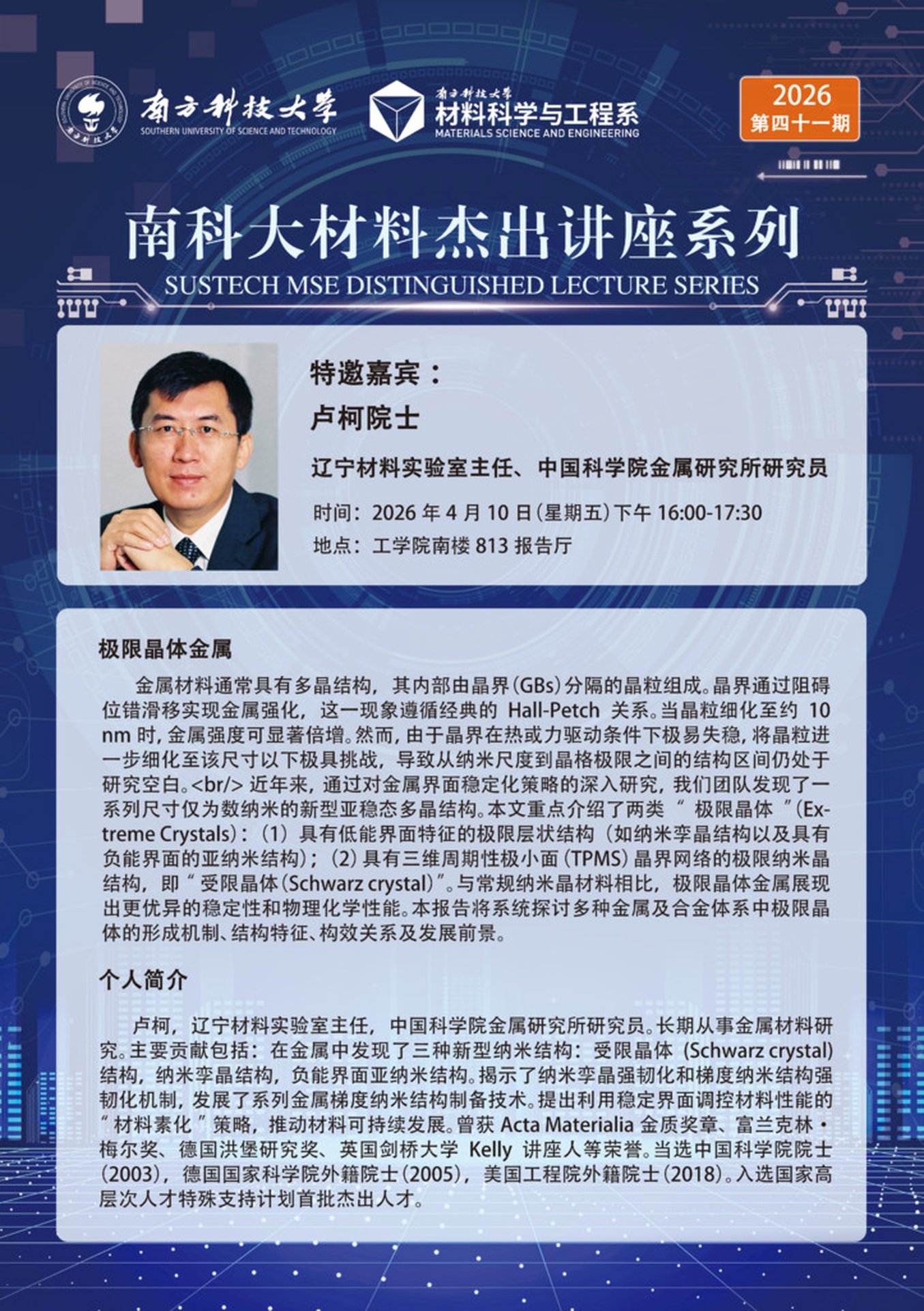 《南科大材料杰出讲座系列 第四十一期》卢柯 院士:极限晶体金属